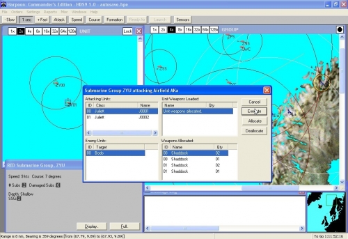 In buona parte delle missioni avrete solo una vaga idea di dove si trovi il nemico e quale siano le forze a sua disposizione. Il vostro compito sarà quello di individuare il nemico prima che lui rilevi le vostre forze, una posizione di estremo vantaggio in caso di combattimento. A tale scopo dovrete utilizzare al meglio le vostre unità, tenuto conto che, come accennato in precedenza, ogni metodo di rilevamento attivo utilizzato (radar, sonar attivi ecc) vi espone alla possibilità di un’individuazione passiva da parte del nemico. La ripetibilità delle missioni è ottima: spesso e volentieri la posizione di partenza delle proprie forze e di quelle nemiche è variabile (entro certi parametri stabiliti dall’autore dello scenario). Anche il numero delle forze a disposizione può essere variabile, dato che nello scenario editor è possibile impostare una probabilità di inclusione nella missione di una specifica unità o di un gruppo.