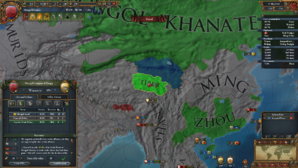 Era prevedibile che i Russi avrebbero cominciato a colonizzare le steppe siberiane e resto dell'idea che anche tu dovresti "occupare" uno slot con le idee per la colonizzazione (con la prima idea ti viene consegnato già un colono). Se la Siberia proprio non ti piace oppure non è appetibile puoi sempre rivolgerti all'isola di Shakain, ad Hokkaido e all'Indonesia, confidando nel fatto che gli Europei le raggiungano il più tardi possibile. Per l'India: è una pessima idea invaderla dall'Himalaya con un esercito composto prevalentemente da cavalleria e infatti Gengis Khan preferì lanciarsi sulla Persia. Fu poi Babur, che partendo proprio dagli ultimi residui dell'Impero Timuride in Persia che attaccò i regni indiani passando per il Punjab, quello che dovresti fare anche tu secondo il mio parere. Ed infine, se i Russi iniziano a creare claim sulle tue province stai sicuro che prima o poi ti attaccheranno, continua a cercare alleati in Europa, qualsiasi nazione che possa distoglierli dal fronte orientale.
